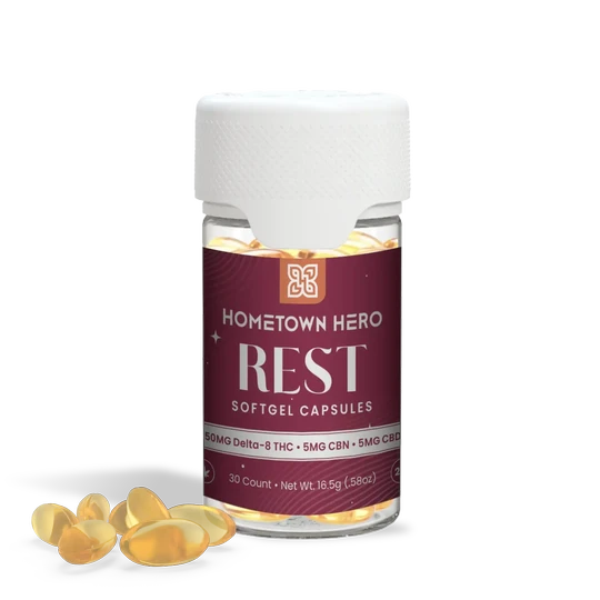 Find deep, restorative rest with our 50mg Rest Capsules, expertly formulated with a calming blend of Delta 8 THC, CBN, and CBD. Each capsule delivers a powerful trifecta of cannabinoids designed to quiet the mind, relax the body, and support uninterrupted, high-quality sleep—without next-day grogginess.